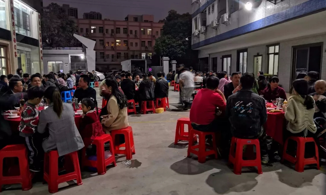 为了感谢所有员工2019年对公司的支持和付出,晚上6点举办了团年宴。桌子整齐地排列在展厅大门前,认识的、不认识的……大家围坐在一起,觥筹交错,言笑晏晏,好不热闹。每一道菜,都注入满满的心意和感恩!