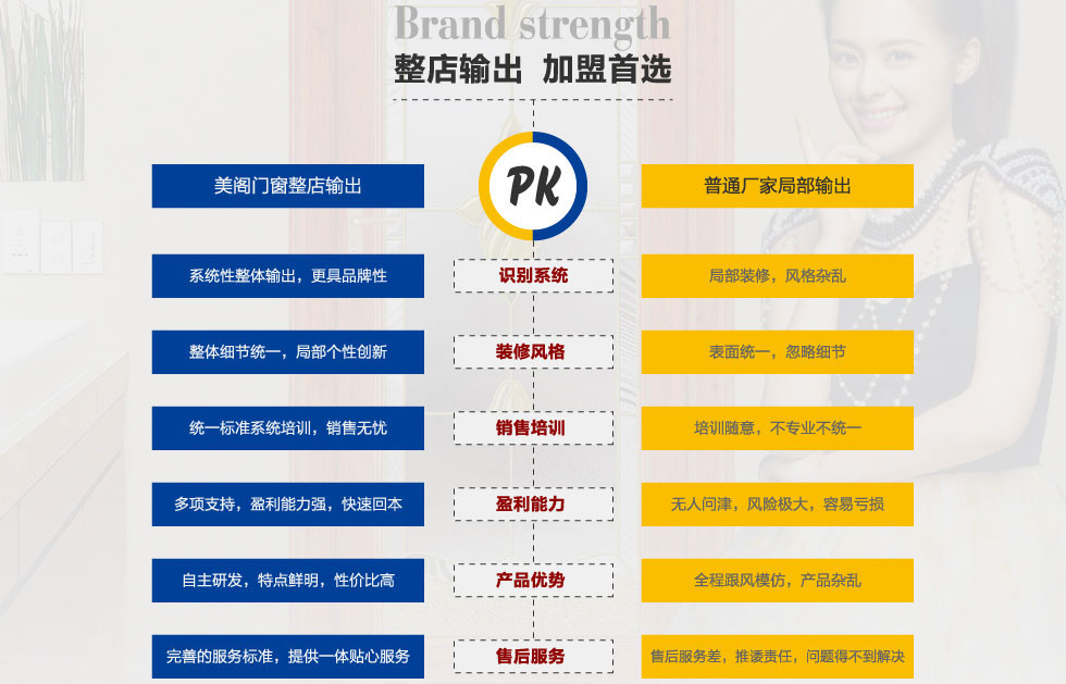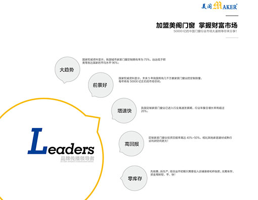 随着楼市的火爆,开一家铝合金门窗加盟专卖店成为很多投资者的选择。但在选择不同的门窗厂家时,所面对的门窗加盟政策不同相同。对于大部分实力一般的门窗厂家,都采取局部输出的加盟方式,而美阁门窗采取的加盟方式是整店输出。