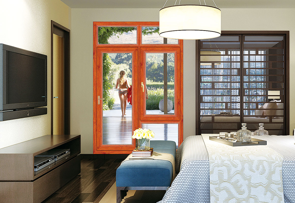 *配置中空钢化玻璃;隔热型材,保温节能;三腔结构,强度高、隔音好;