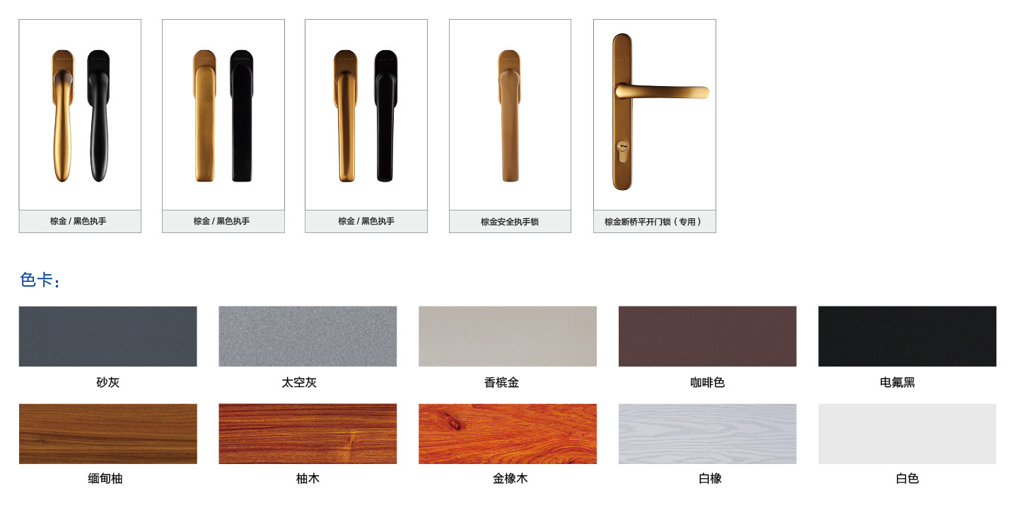 *超大中空玻璃+5层气密胶条结构;隔热型材,保温节能;三腔结构,强度高、隔音静音好。