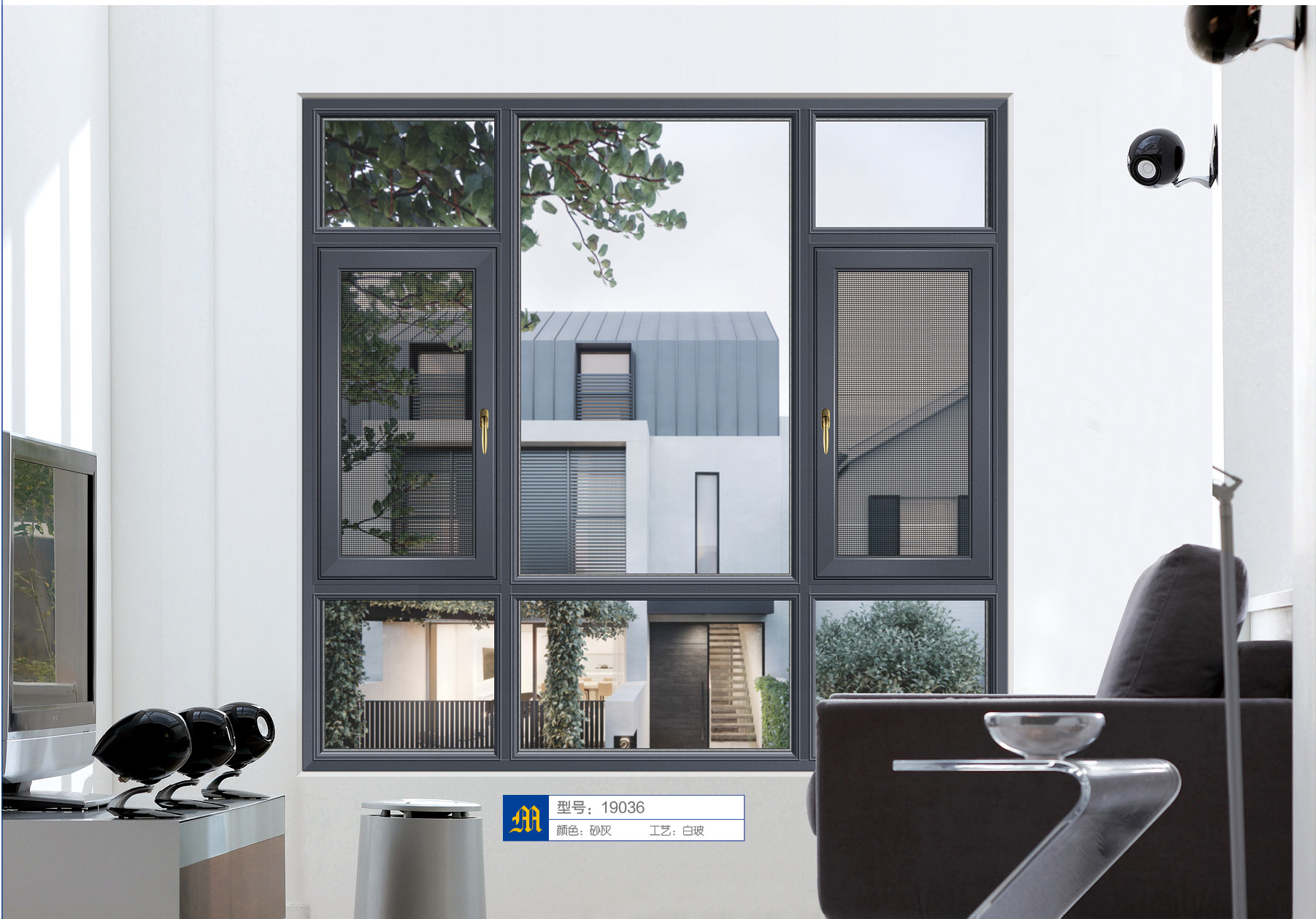 *超大中空玻璃+5层气密胶条结构;隔热型材,保温节能;三腔结构,强度高、隔音静音好。