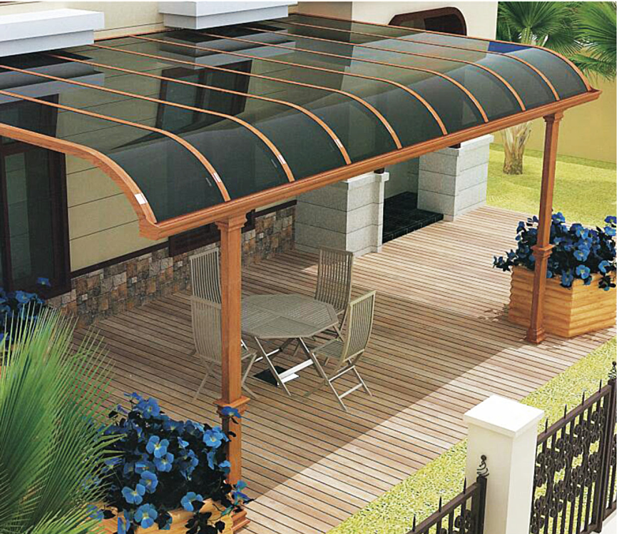 4、雨棚具有的特殊防紫外线功能,不仅使人体皮肤免受紫外线的侵袭,而且大大延长了室内装修和家具的使用寿命。改善建筑室内的热、光环境,降低建筑总耗能,实现节能减排的目的。