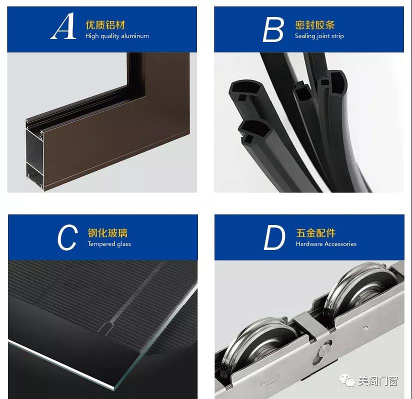 五金配件是门窗的心脏。不锈钢原料的五金配件更佳,而滑轮最佳挑选POM原料的商品,因为此类商品有更高强度和耐磨性。推拉门在滑动时应带有一定自重,顺滑而没有震动。